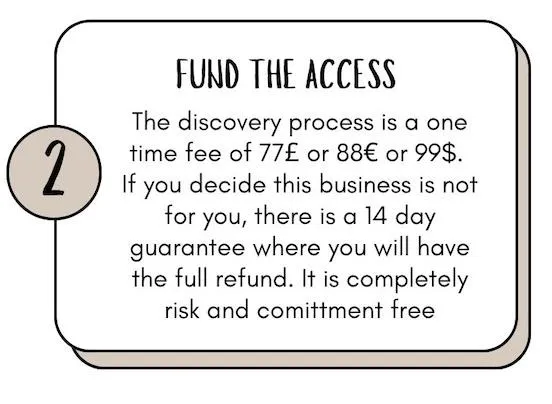 The Discovery Process is where you will learn everything you need to know about whether this business is the right fit for you or not. The best part is the €88 fee is refundable making it risk and commitment free.