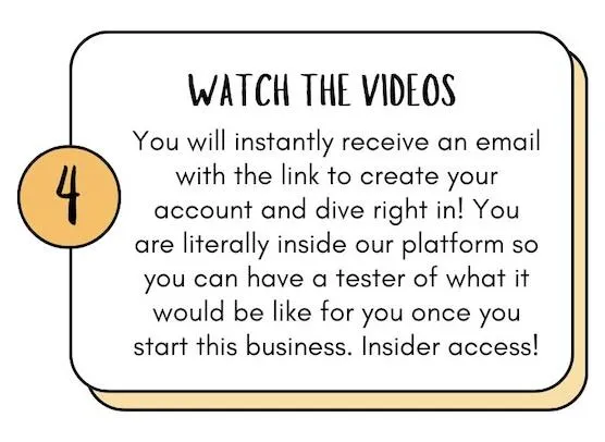 After your 1:1 Business Set Up Call where we will solve all the questions, revisit the way of getting started that suits you best, outlining a road plan for the next 6-12 months; the next step would be signing your paperwork to become a business owner and independent distributor. From that moment you will step by step build your business in 6 weeks (with 2-3 hours every day) and start the magic!